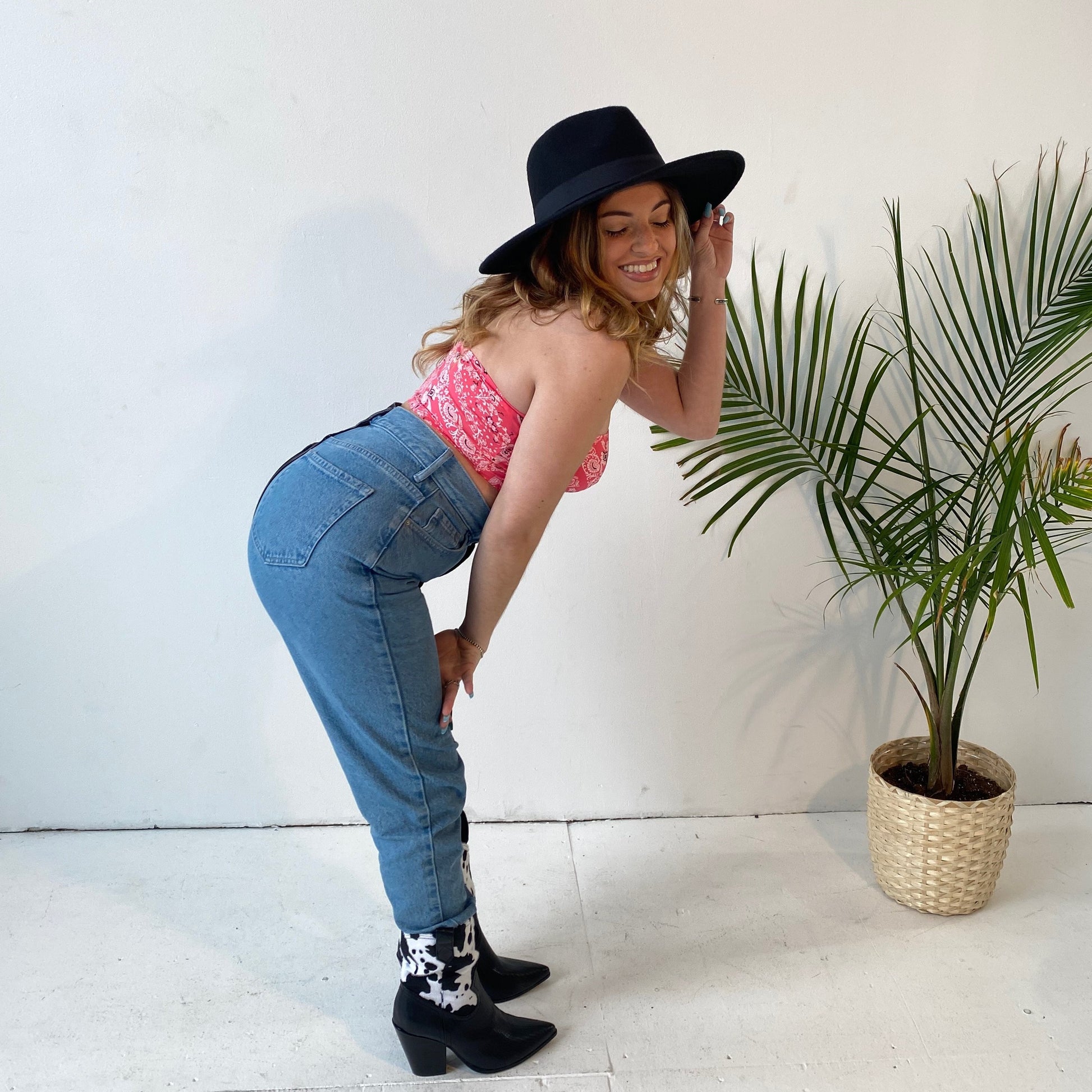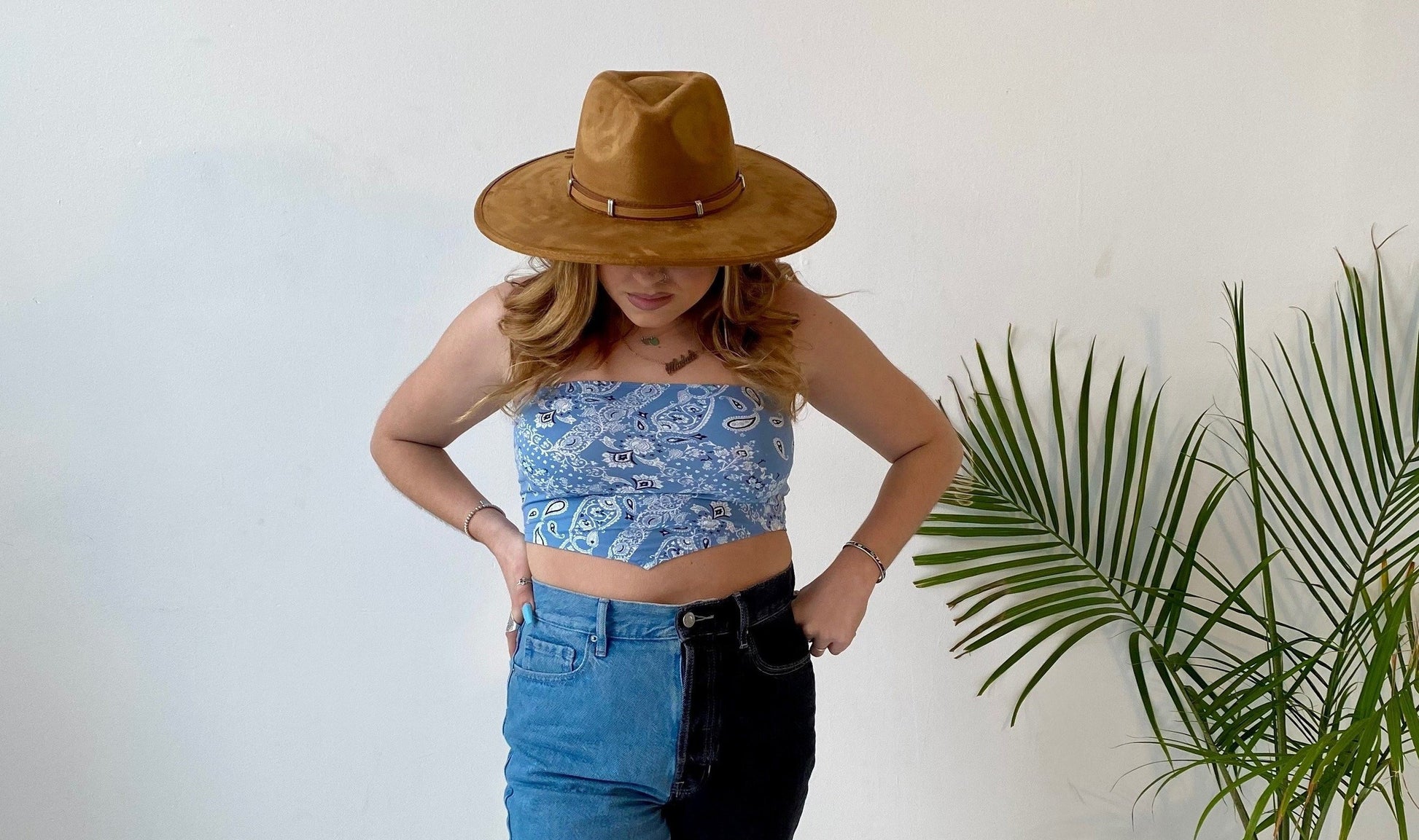 - Paisley print, strapless, bandeau top in a fitted style with an open back